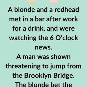A blonde and a redhead met in a bar after work for a drink, and were watching the 6 O’clock news.A man was shown threatening to jump…