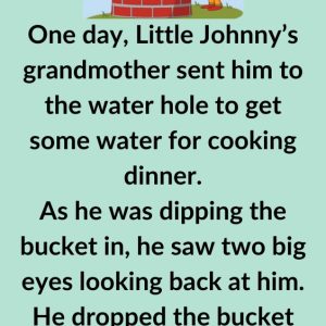 One day, Little Johnny’s grandmother sent him to the water hole to get some water for cooking dinner.As he was dipping the bucket in, he saw two…