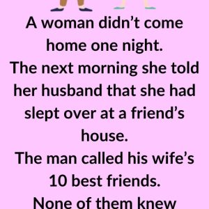 A woman didn’t come home one night.The next morning she told her husband that she had slept over at a friend’s house. The man called his wife’s…