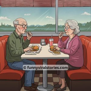 An elderly couple walked into a diner and ordered one burger, a side of fries, and a drink. The old man unwrapped the burger, carefully cut it…