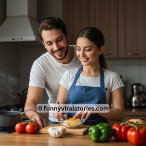 A man watched his wife preparing dinner