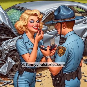 A blonde had just been in a terrible car accident. Somehow, she climbed out of the wreck without a single scratch — and was calmly applying fresh…