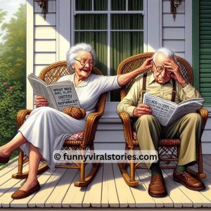 An elderly couple, fresh off their 50th wedding anniversary, were sitting peacefully on the porch—each rocking in their chairs and reading. Out of nowhere, the wife reaches…