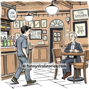 A guy walks into a bar, looks around, and notices an older man sitting at a nearby table. He says to the bartender, “A round on me…