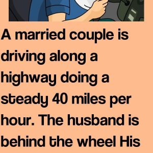 A married couple is driving along a highway doing a steady 40 miles per hour. The husband is behind the wheel His wife suddenly looks across at…