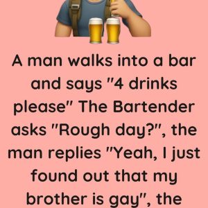 The Bartender asks “Rough day?”, the man replies “Yeah, I just found out that my brother is gay”, the Bartender says “Well everyone has their own path”….