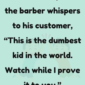 …and the barber whispers to his customer, “This is the dumbest kid in the world. Watch while I prove it to you.” The barber puts a dollar…