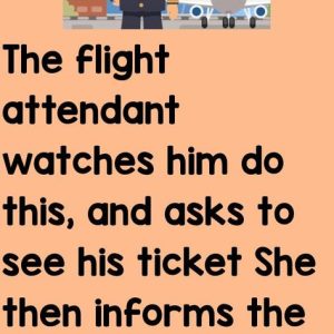The flight attendant watches him do this, and asks to see his ticket She then informs the linebacker that he has only paid for economy class, and…