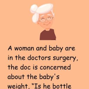 A woman and baby are in the doctors surgery, the doc is concerned about the baby’s weight, “Is he bottle fed or breast fed? The woman replies,…