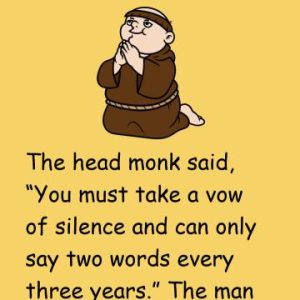 The head monk said, “You must take a vow of silence and can only say two words every three years.” The man agreed and after the first…