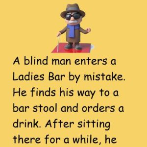 A blind man enters a Ladies Bar by mistake. He finds his way to a bar stool and orders a drink. After sitting there for a while,…